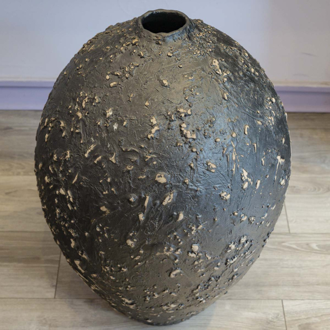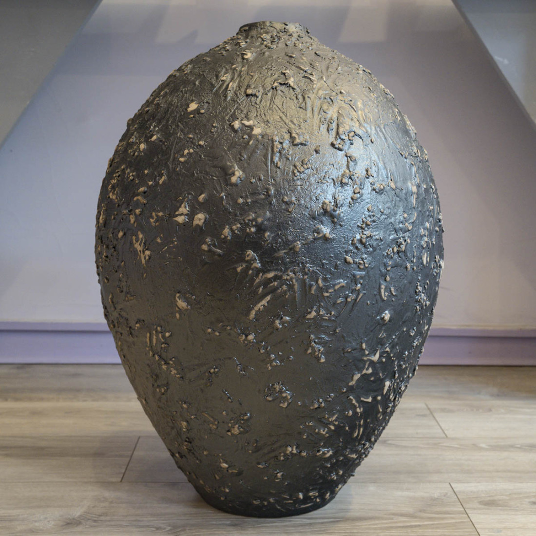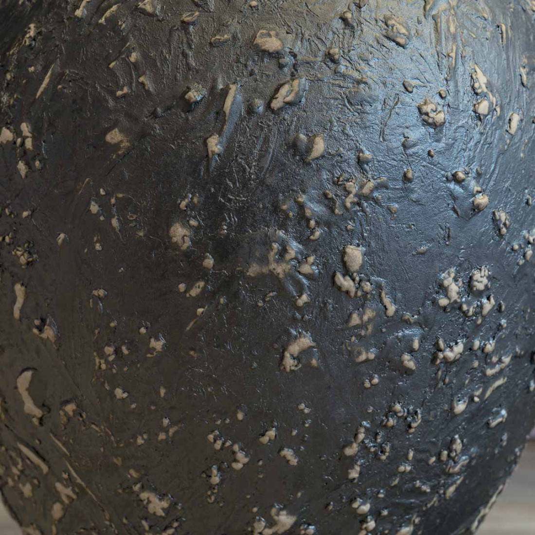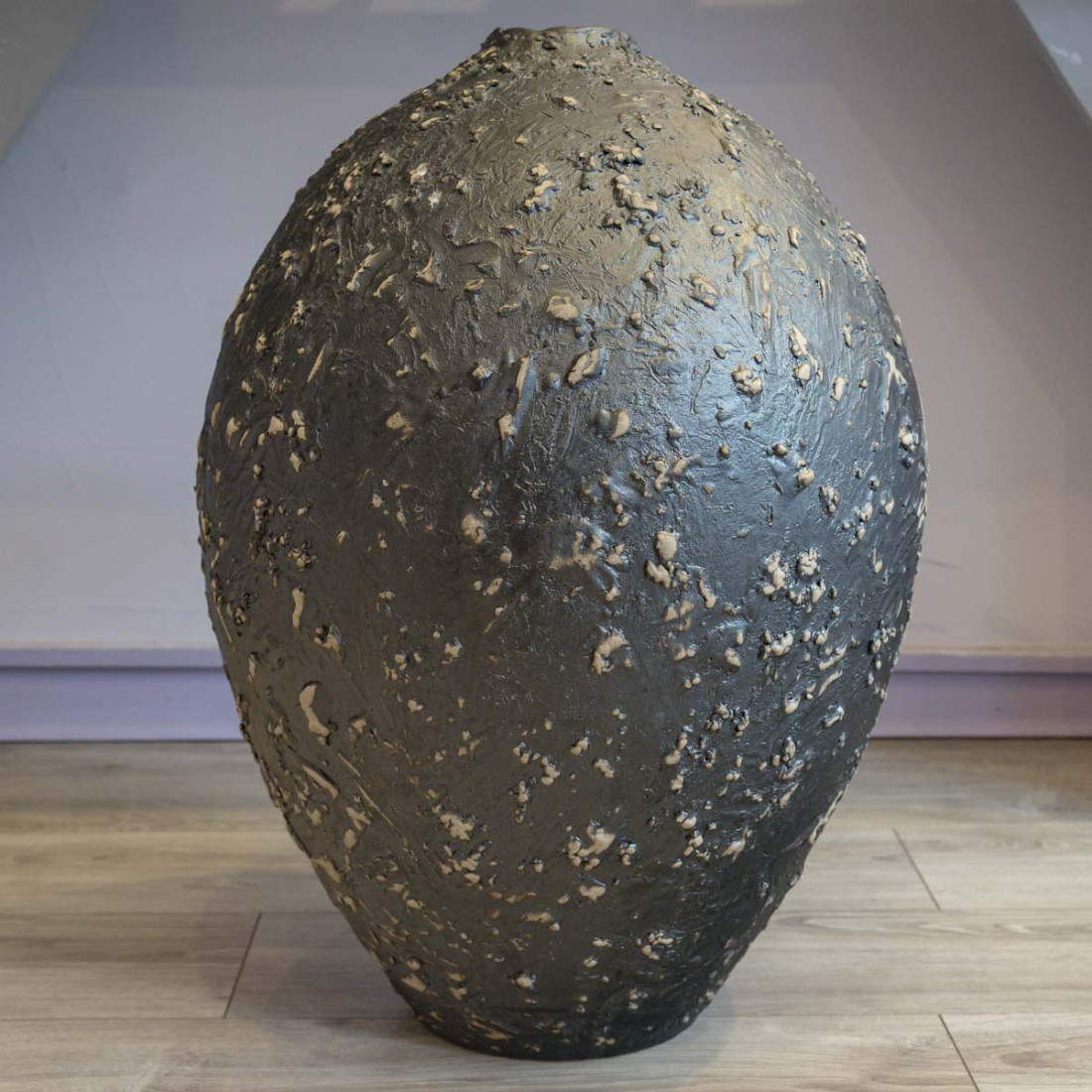 Large black glazed stoneware jar, wheel-thrown, unique piece signed Marc Uzan.
